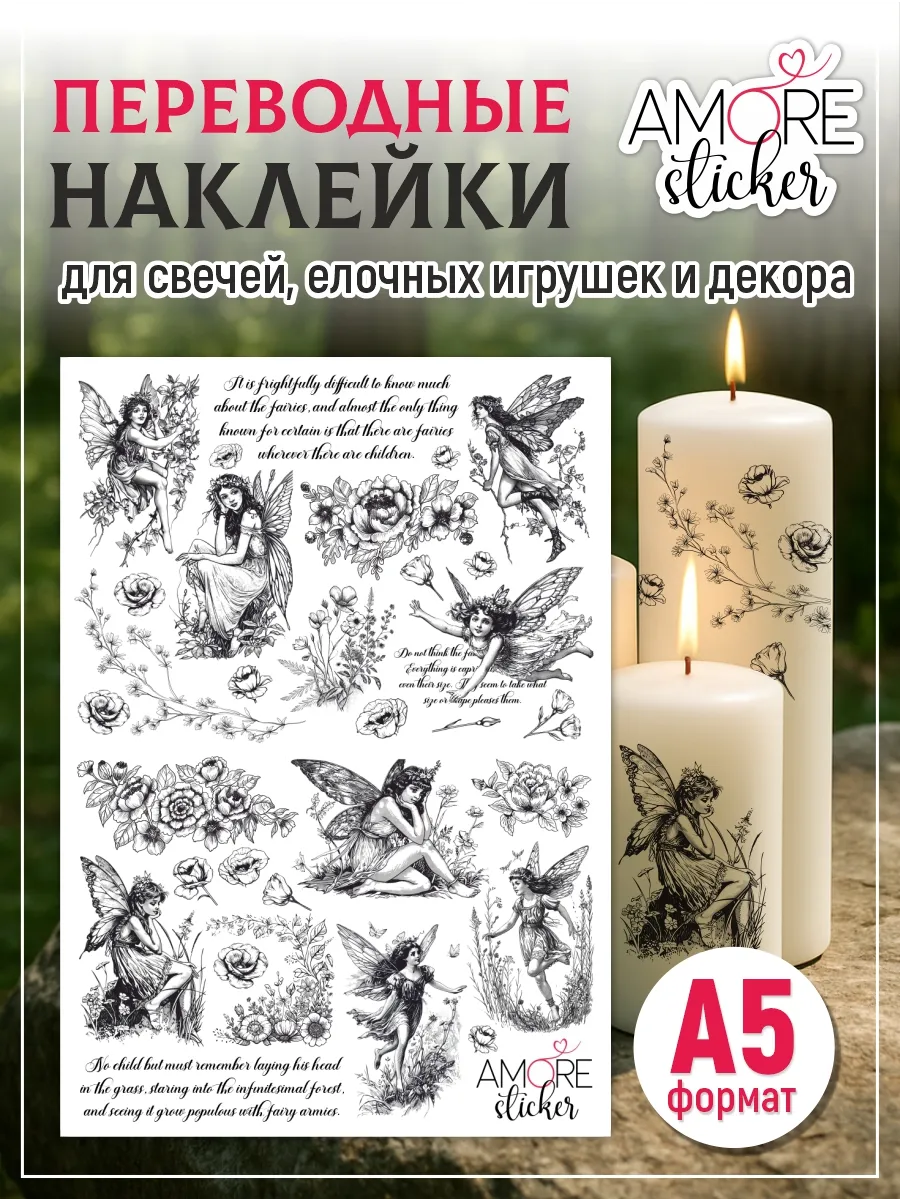 --Наклейки на свечи водные Феи
