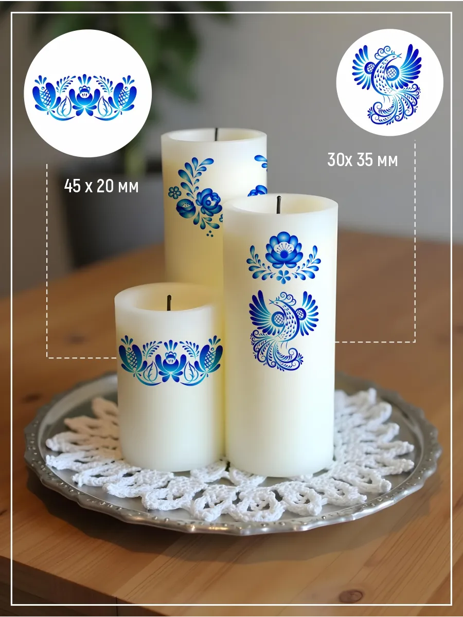 --Наклейки на свечи водные Гжель 2