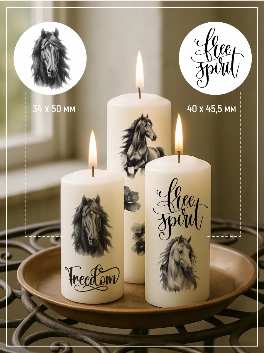 Наклейки на свечи водные Лошади черные