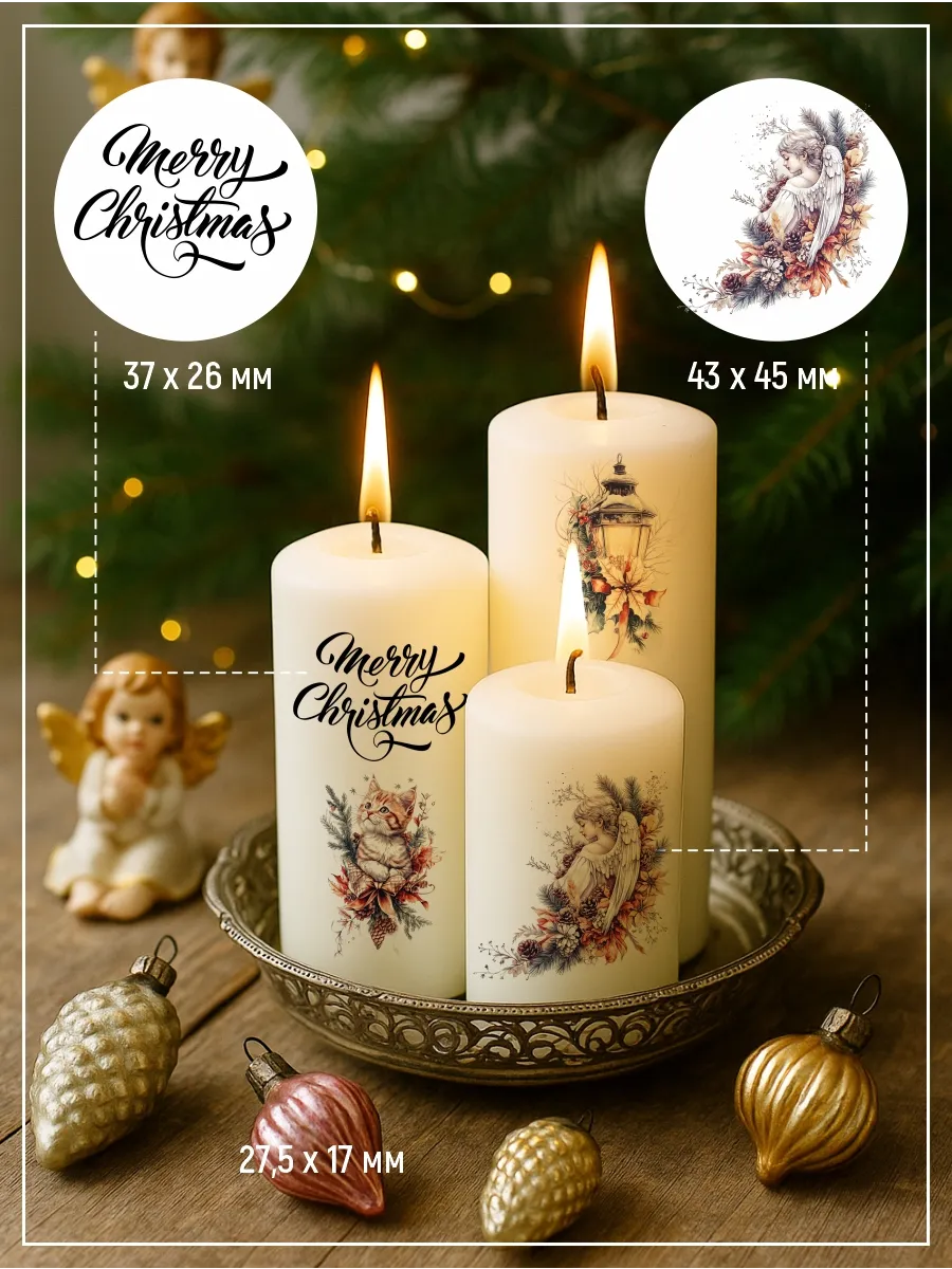 Наклейки на свечи водные Рождество