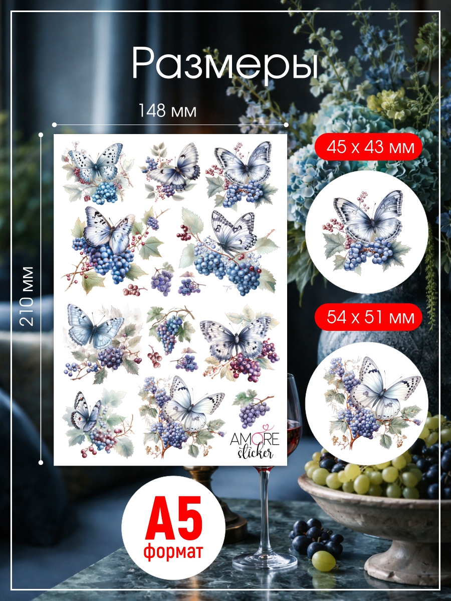--Наклейки переводные для свечей и декора Бабочки и виноград