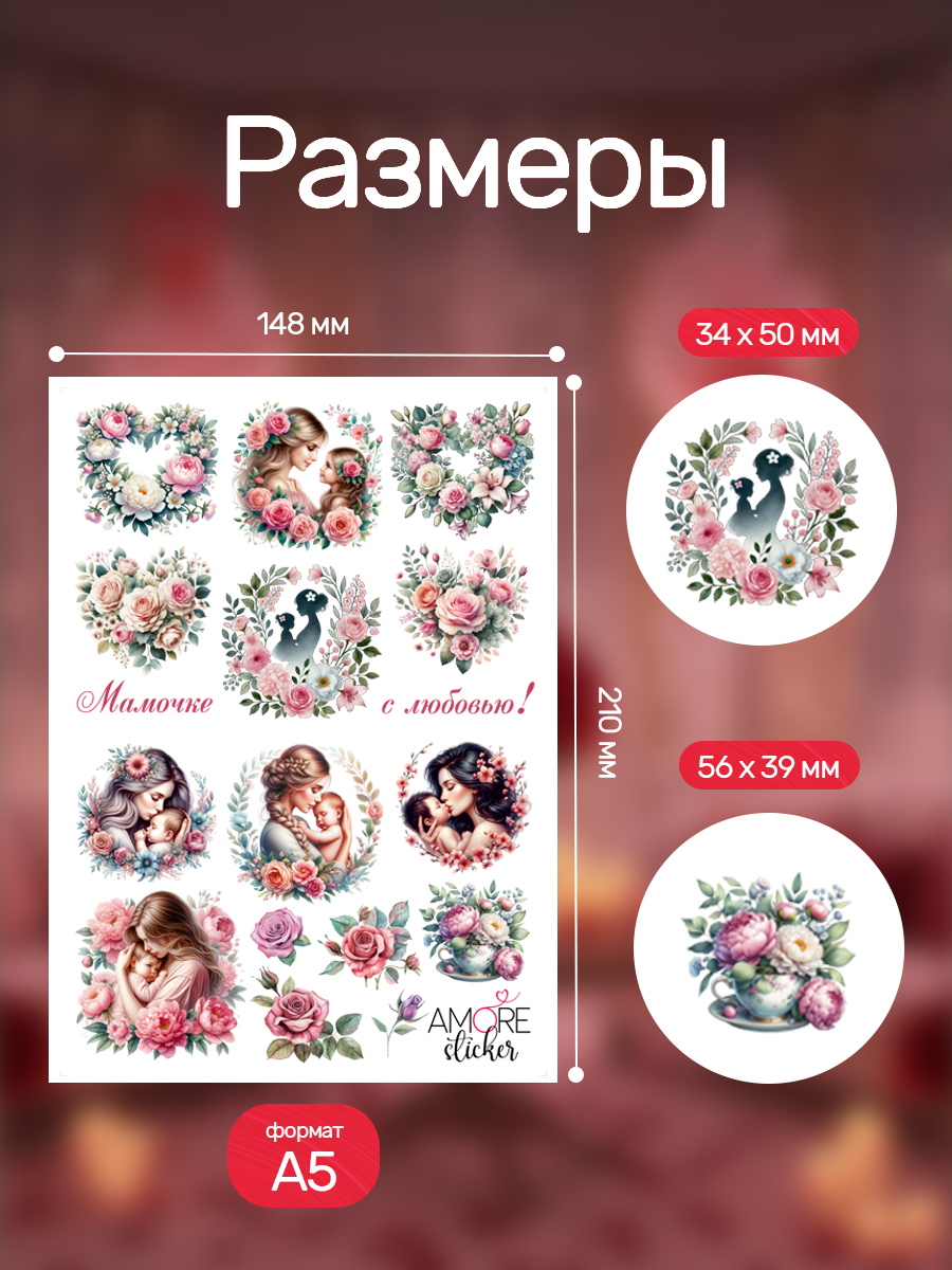Наклейки переводные для свечей и декора день матери