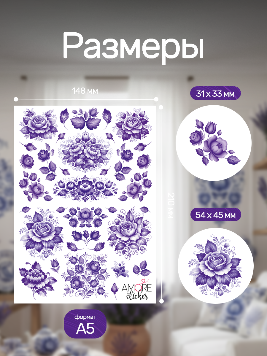 --Наклейки переводные для свечей и декора Фиолетовая гжель