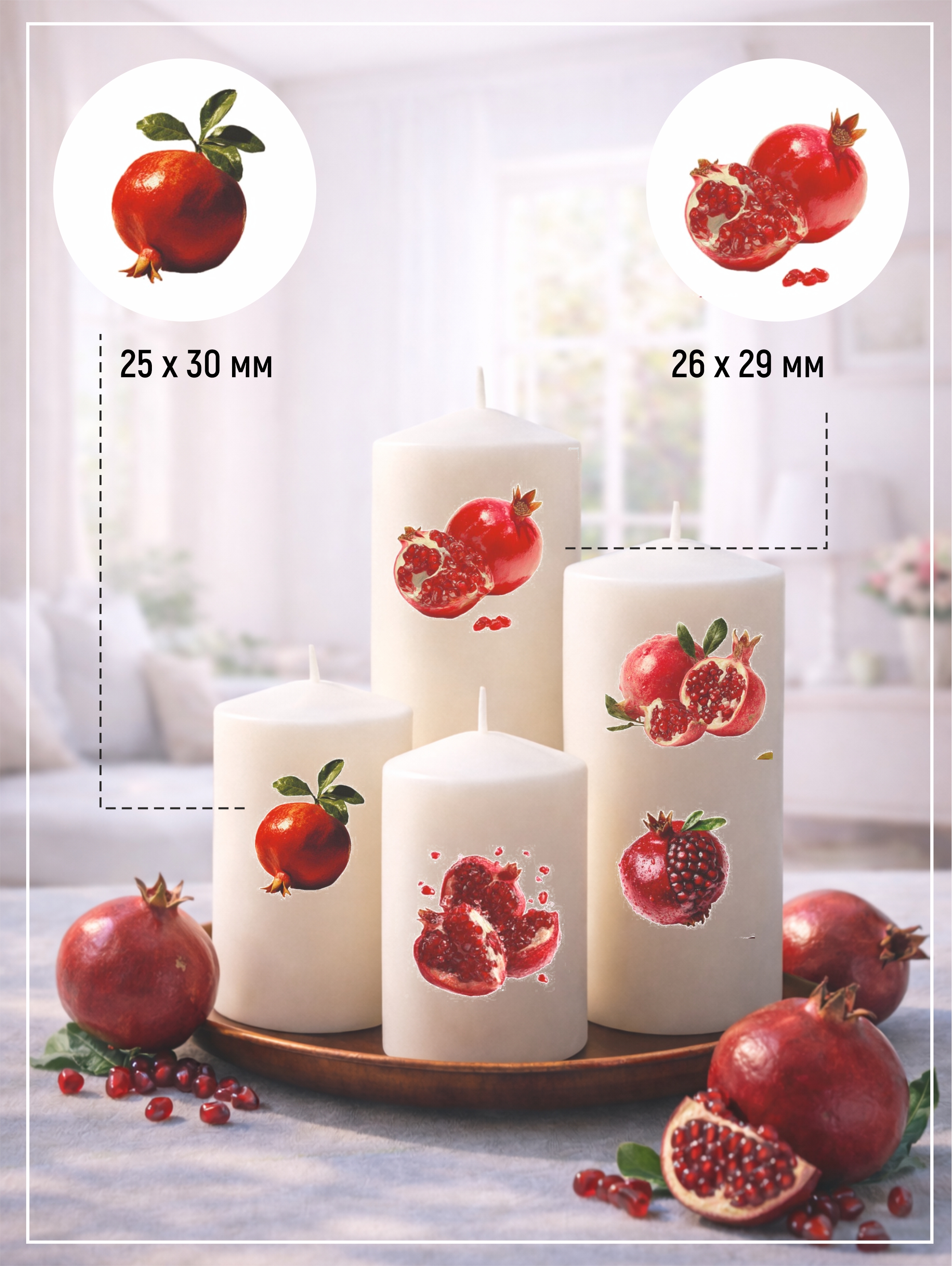 Наклейки переводные для свечей и декора Гранаты