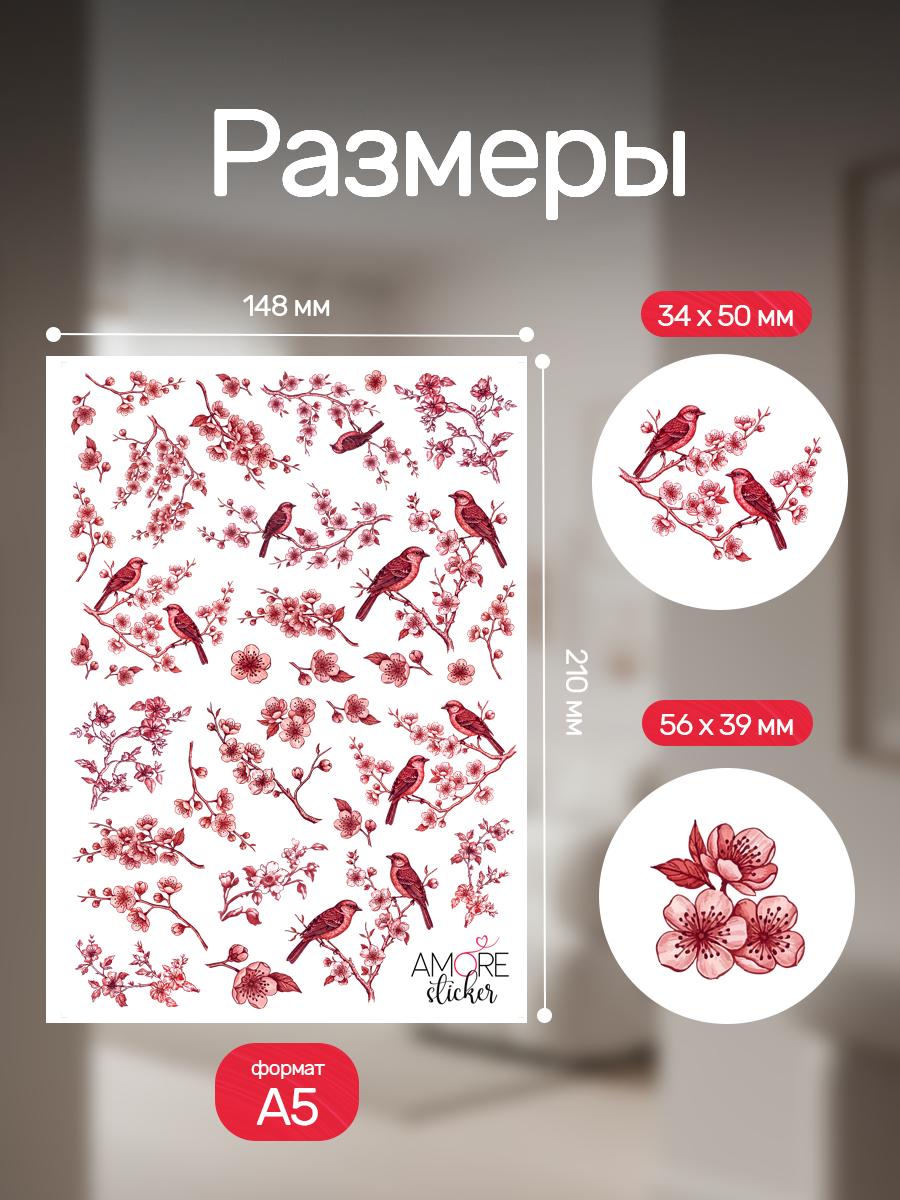 Наклейки переводные для свечей и декора Красная сакура