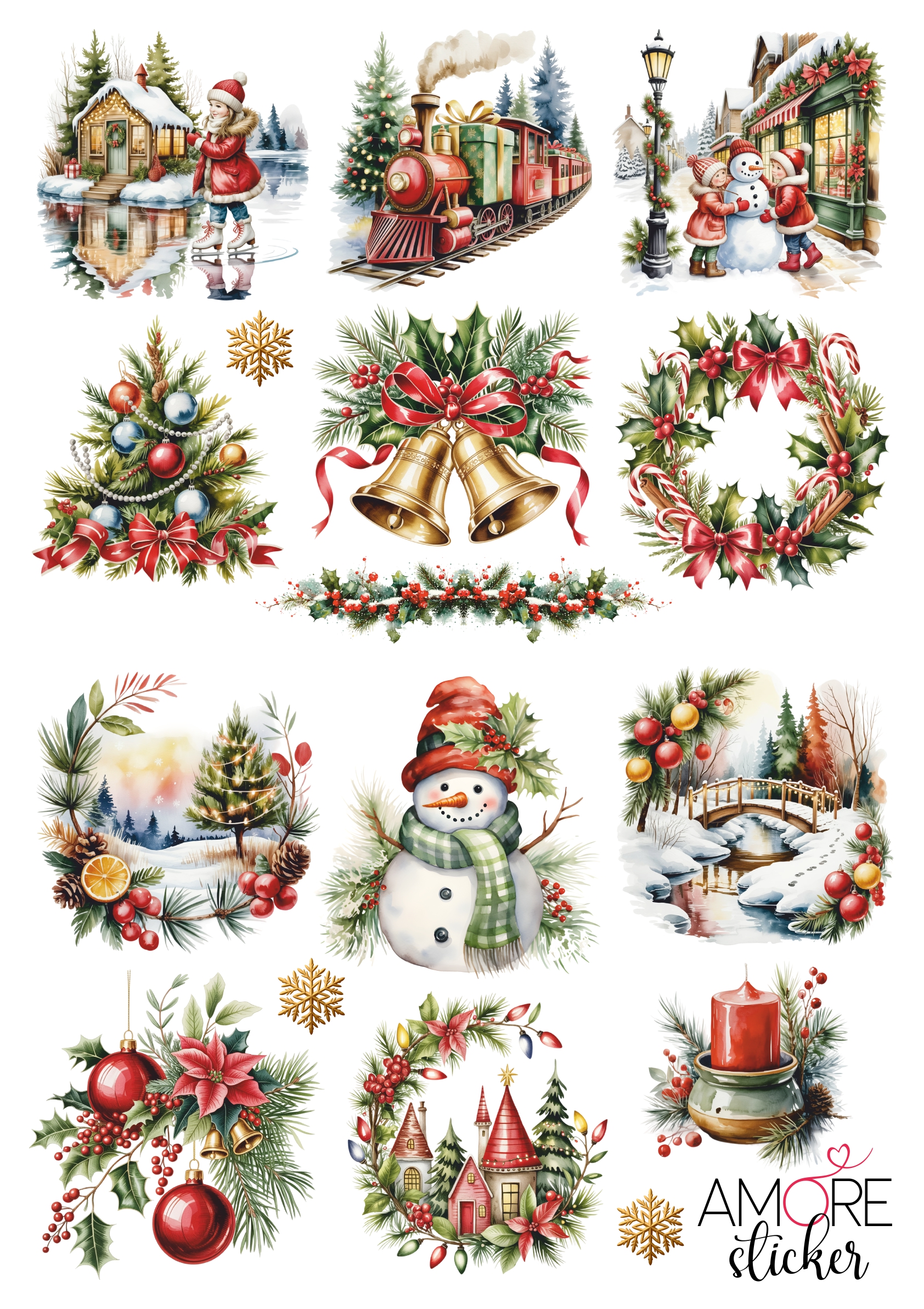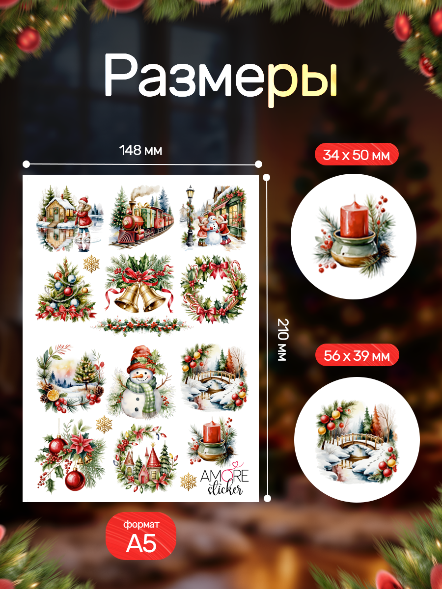 Наклейки переводные для свечей и декора Рождество