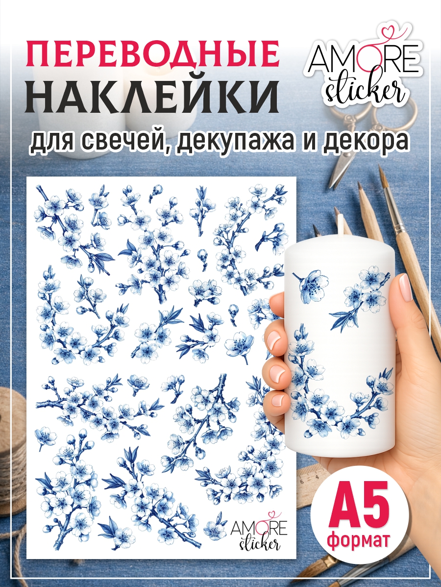 Наклейки переводные для свечей и декора Синяя сакура