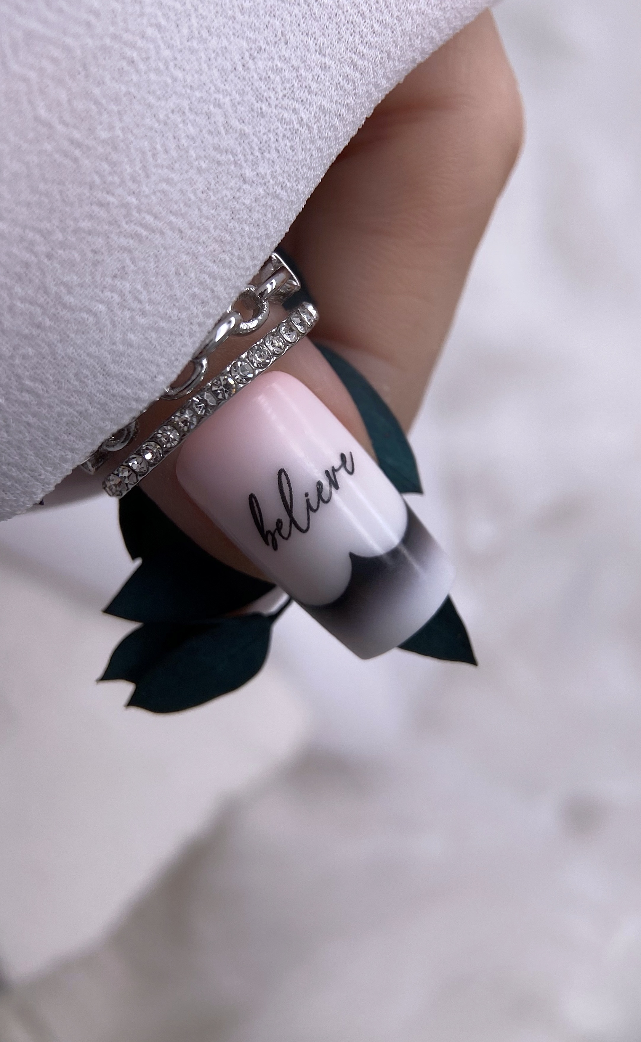 1. Подготовьте ногти для нанесения изображений: поверхность обезжиривается, обычно наносится фоновый лак (белый)