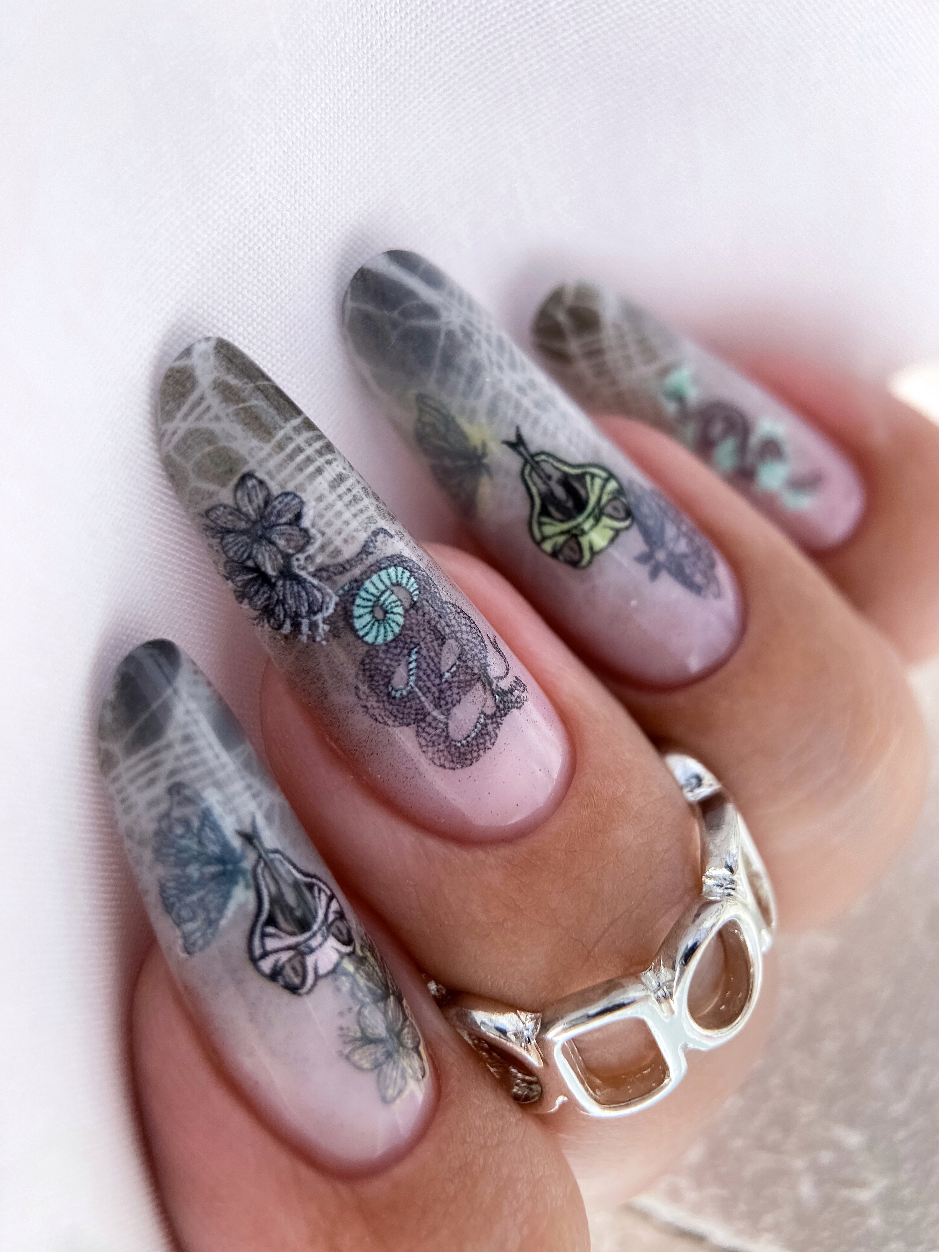 4. Перенесите изображение с бумажного носителя на поверхность ногтя клеевой стороной вниз (методом сдвига)