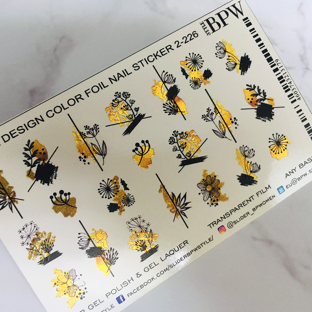 Слайдер-дизайн металлик Черные веточки на золоте