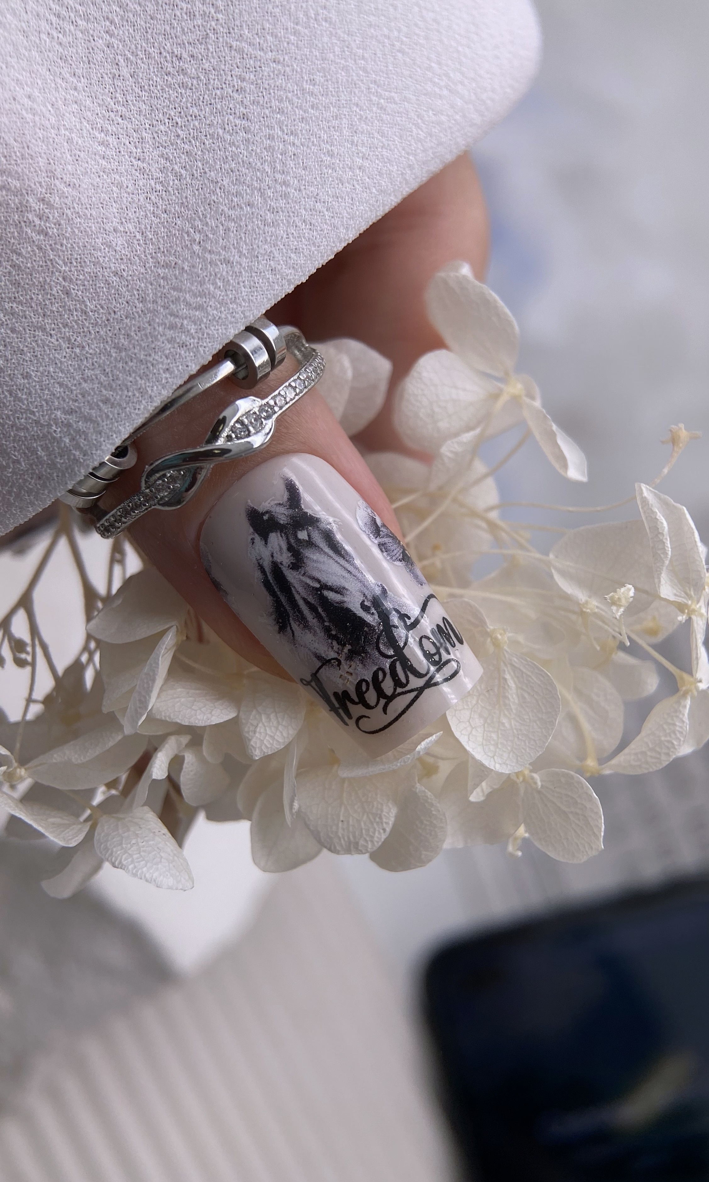 1. Подготовьте ногти для нанесения изображений: поверхность обезжиривается, обычно наносится фоновый лак (белый)
