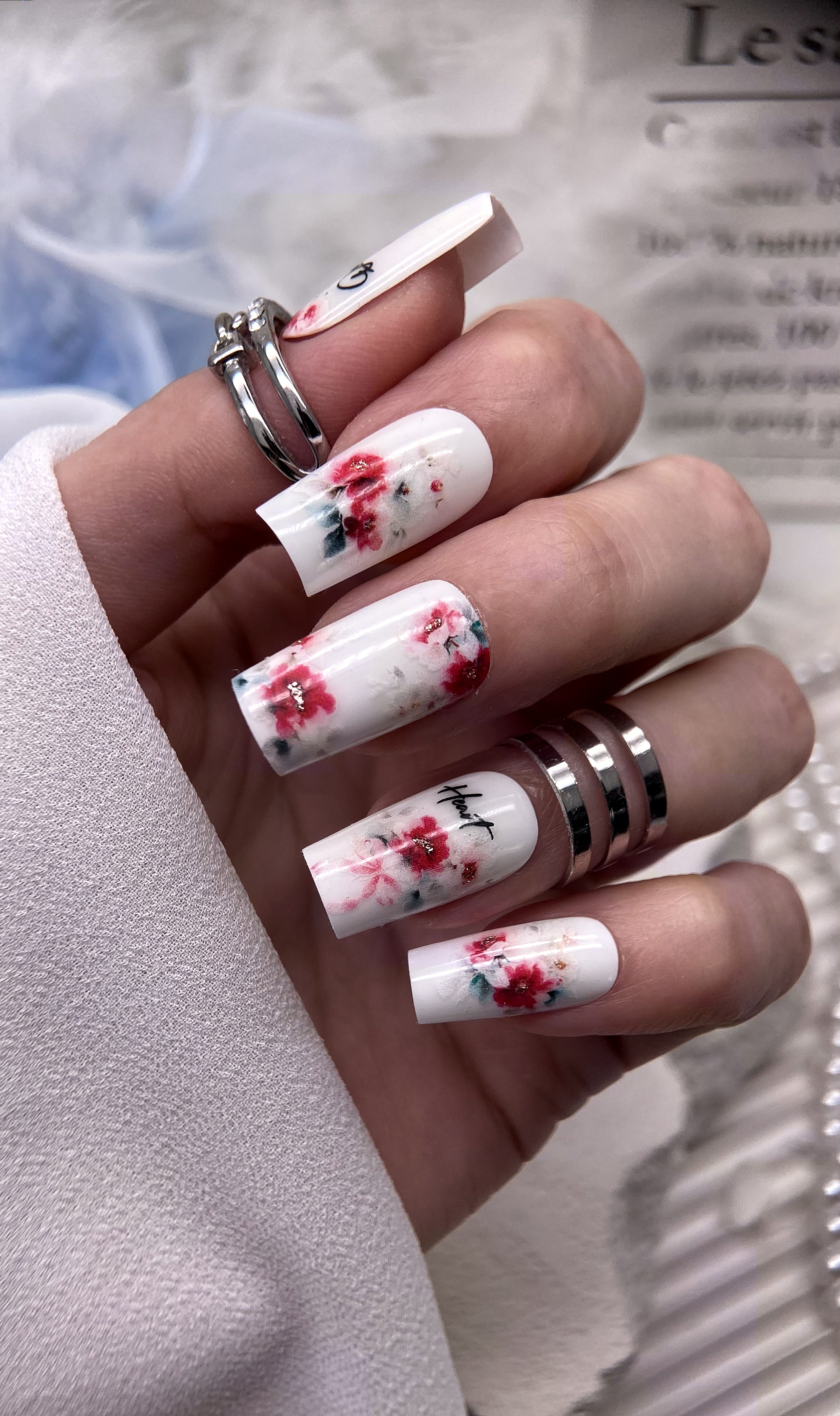 4. Перенесите изображение с бумажного носителя на поверхность ногтя клеевой стороной вниз (методом сдвига)