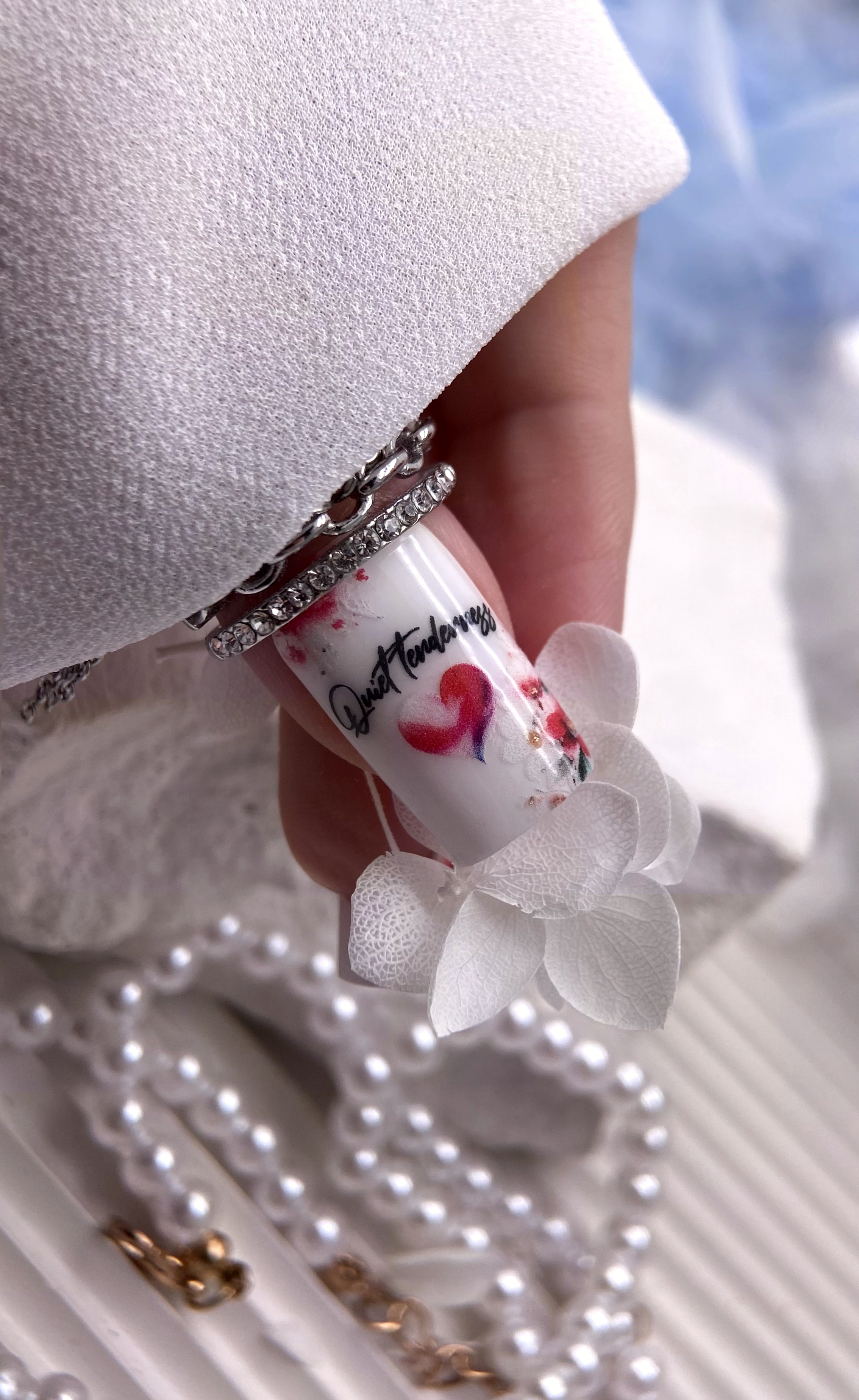 1. Подготовьте ногти для нанесения изображений: поверхность обезжиривается, обычно наносится фоновый лак (белый)