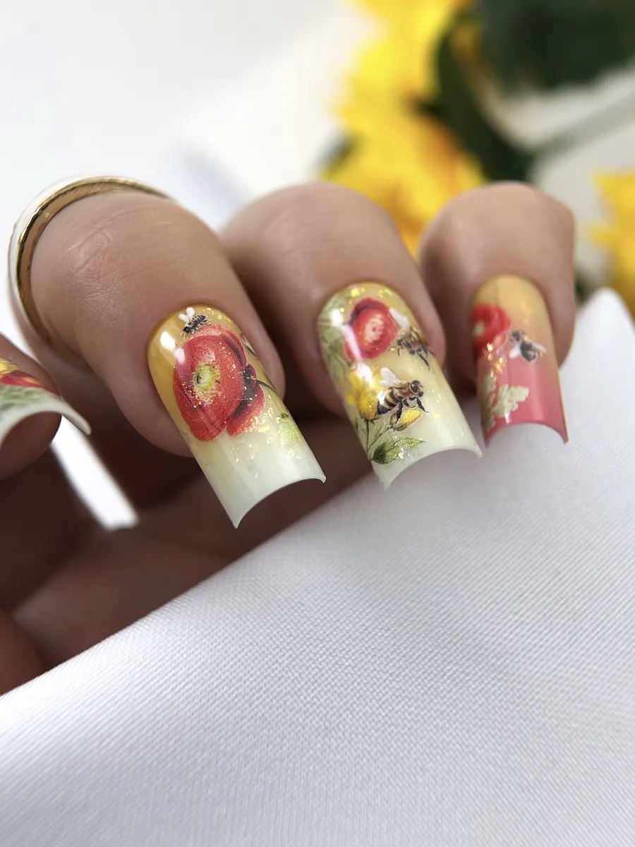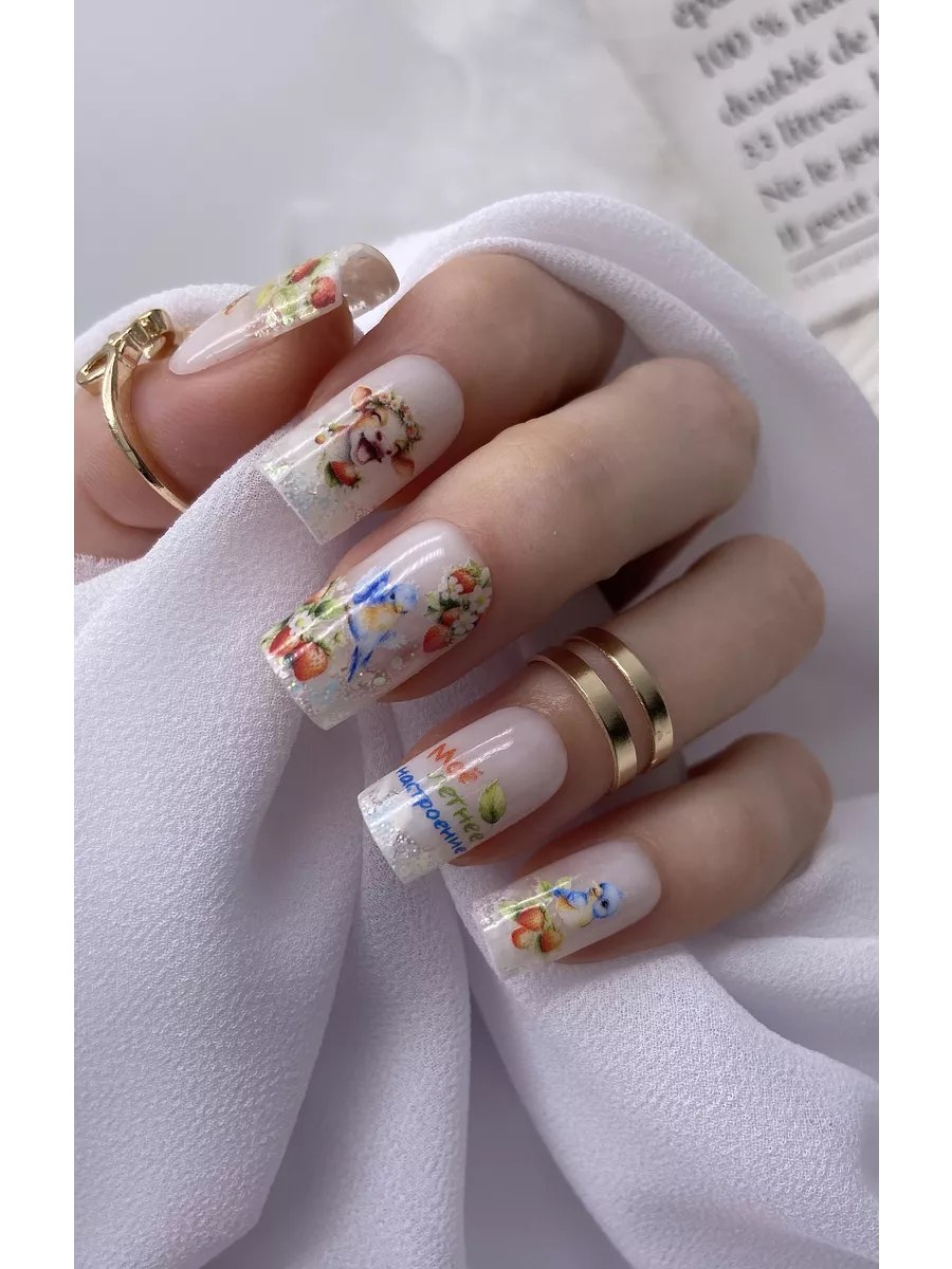 Особая технология УФ-печати позволяет наносить слайдеры на любые гель-лаки, вне зависимости от их яркости и интенсивности оттенков. С изделиями очень удобно работать, благодаря повышенной эластичности они отлично растягиваются по площади ногтя.