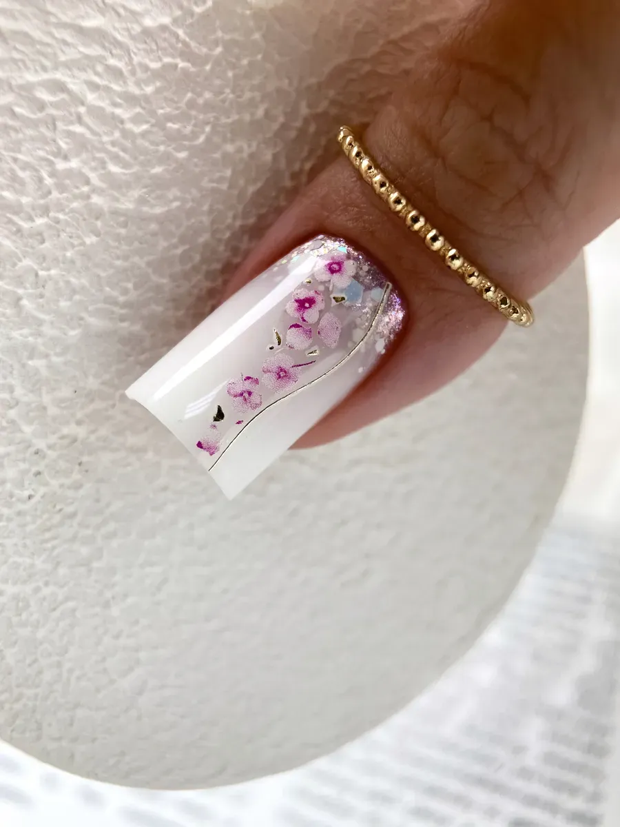 1. Подготовьте ногти для нанесения изображений: поверхность обезжиривается, обычно наносится фоновый лак (белый)