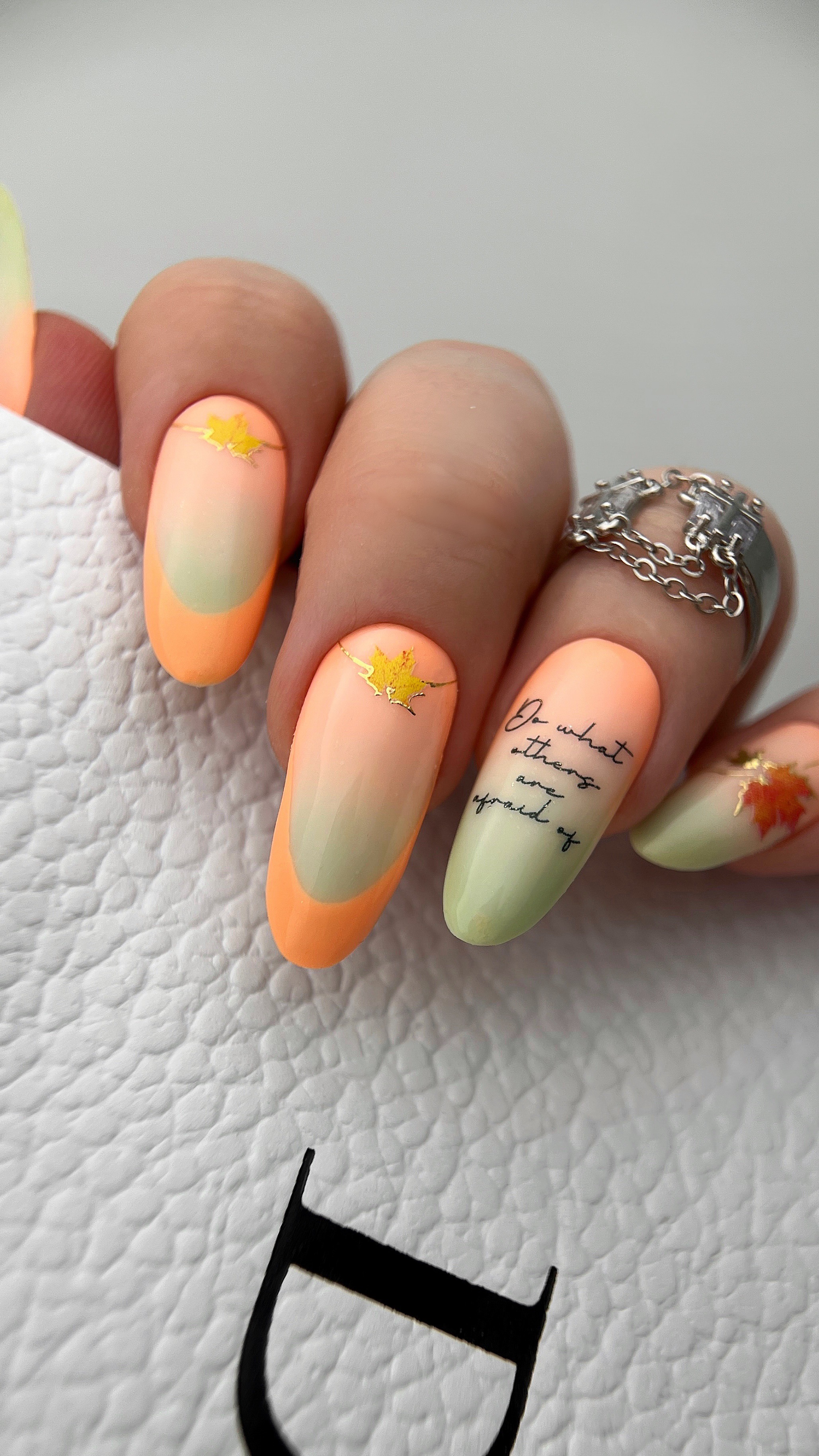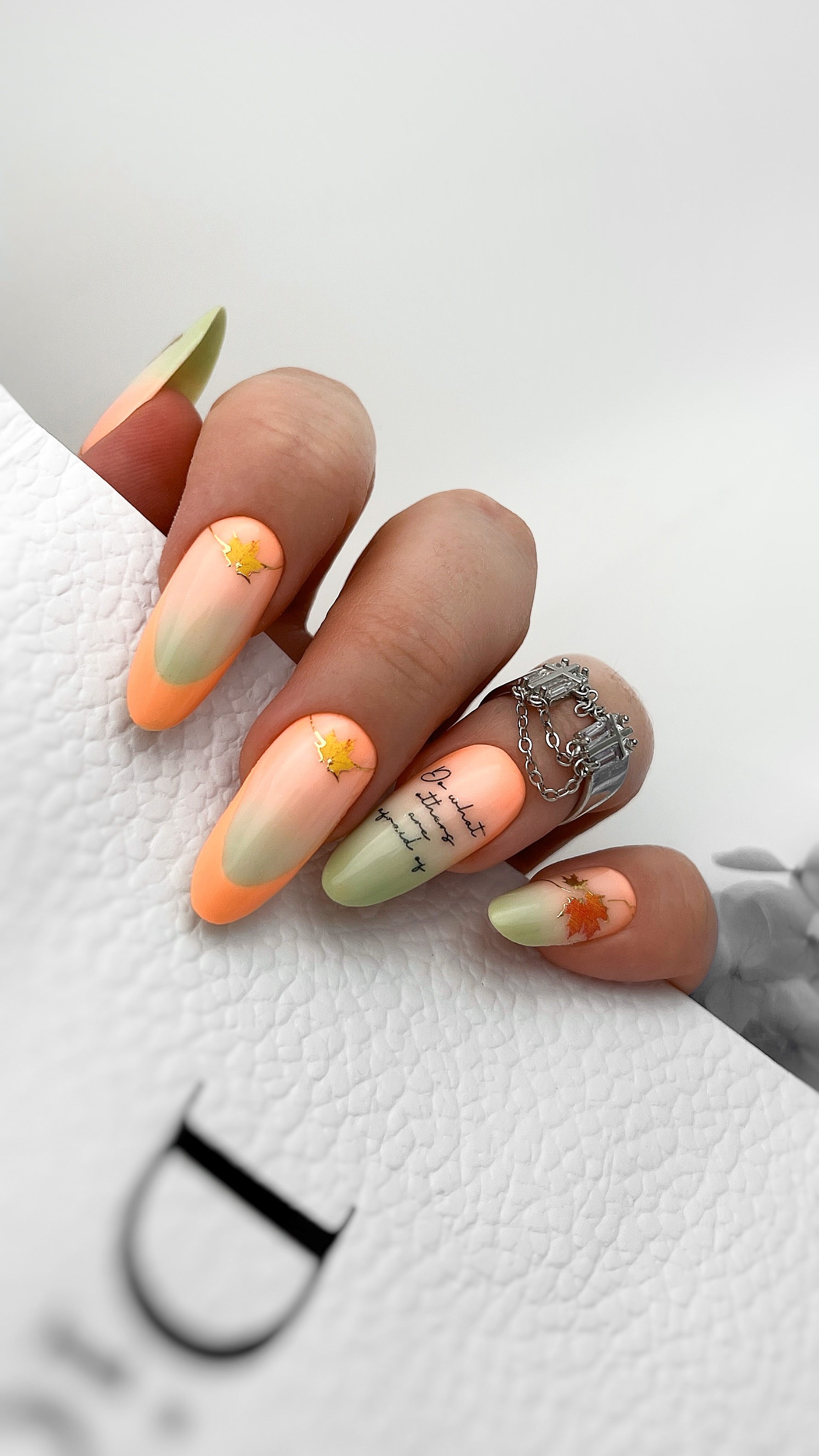 4. Перенесите изображение с бумажного носителя на поверхность ногтя клеевой стороной вниз (методом сдвига)