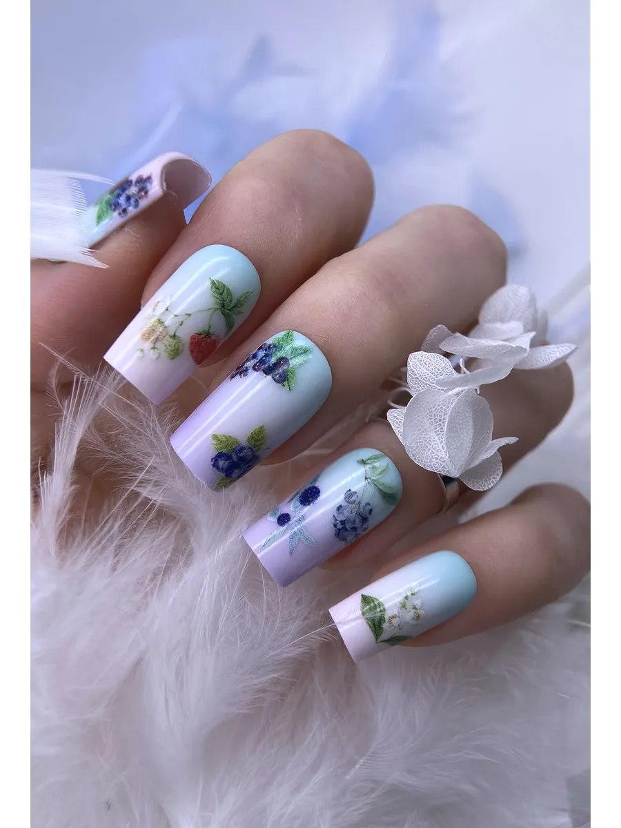 Особая технология УФ-печати позволяет наносить слайдеры на любые гель-лаки, вне зависимости от их яркости и интенсивности оттенков. С изделиями очень удобно работать, благодаря повышенной эластичности они отлично растягиваются по площади ногтя.